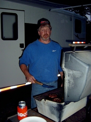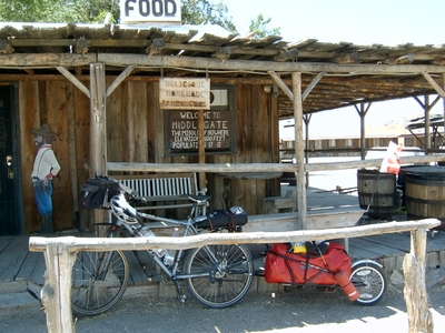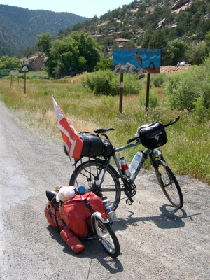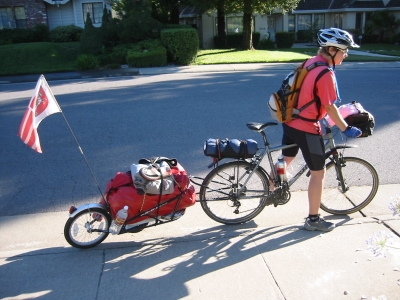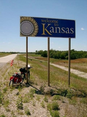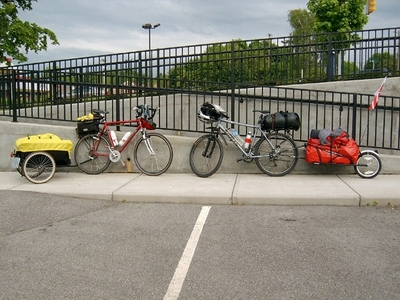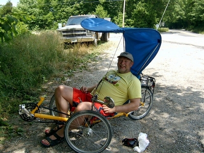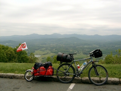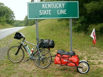On May 14th, on my way to Lexington I met Jim Hammond, another cross-country biker. He was pulling a trailer with two wheels. He told me that he was on his way to meet up with a group of 3 - they met on the internet and where going to ride together.