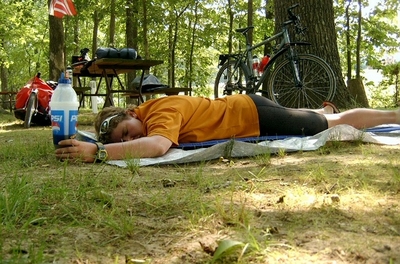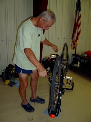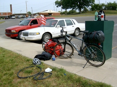 The next day I rode together with Jim Hammond most of the time. We had lunch together and met Jim, Linda and Larry in the evening at the Whytheville Community Center. There was a real meeting point for crosscountry bikers! The ACA group (about 14 people who rode crosscountry together), two american guys and Marieka and Paul, the dutch couple on their tandem, stayed there as well.