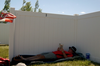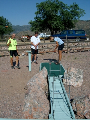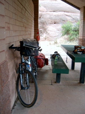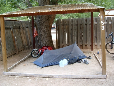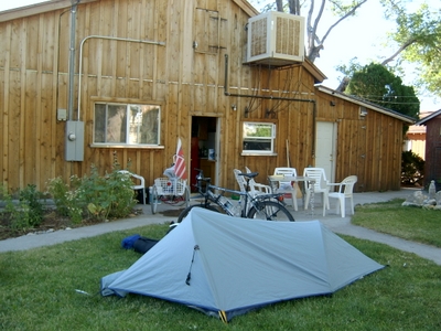I met Jim again that night at the KOA. But getting there was quite an adventure. A police car with its flashing blue lights turned on stopped right next to me. I wondered what I did wrong but the police officer just wanted to warn me. There was a severe weather warning and I should get of the road as fast as I could. After wishing me a safe journey he was on his way again. A few minutes later a storm came up and almost blew me of my bike. I found a shelter in a market garden, where I watched golf-ball sized hail coming down!