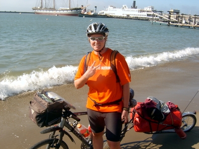 I started out in Virginia Beach, taking my bike down to the beach and dipping the wheels into the Atlantic Ocean. I was very excited, nervous and couldn' t really believe what I was doing. Many people asked me where I was going and it felt weird to say: to San Francisco. Some looked at me with disbelief - I understood, because I didn' t believe it myself.